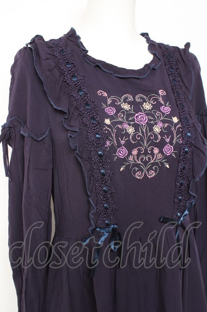 axes femme POETIQUE / フロント刺繍長袖ワンピ M 紫 Y-26-01-31-123-AX-OP-SZ-ZY