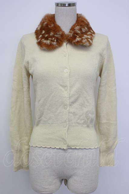 Emily Temple cute / バンビファー襟ニットカーディガン アイボリーXブラウン T-26-02-04-004-ET-TO-SA-ZT