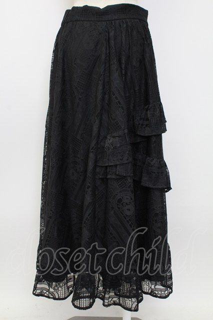 axes femme / レースロングスカート 黒 T-26-02-04-026-AX-SK-SA-ZT