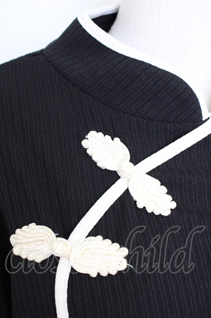 axes femme / チャイナボタンリブトップス ブラック T-26-02-01-007-AX-TO-SA-ZT