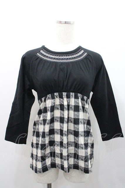 PINK HOUSE / チェリー柄切替トップス L ブラック I-26-01-31-028-LO-TO-SA-ZI