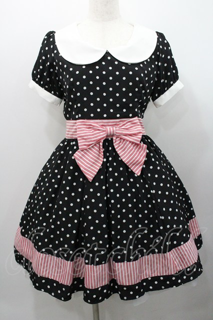 Ank Rouge / 半袖ドットリボンワンピース 黒X白Xピンク I-26-01-31-070-CA-OP-SA-ZI [戻る]