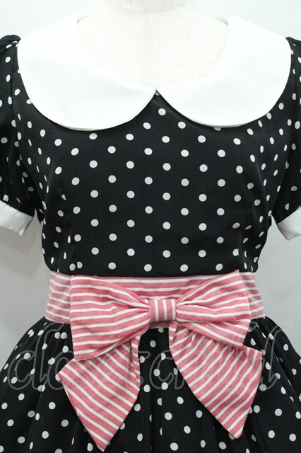 Ank Rouge / 半袖ドットリボンワンピース 黒X白Xピンク I-26-01-31-070-CA-OP-SA-ZI