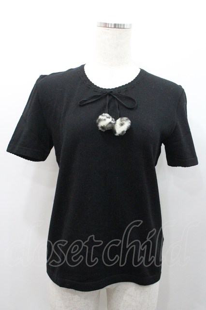 INGEBORG / レオパードファーポンポン付きプルオーバー L ブラック I-26-01-31-037-LO-TO-SA-ZI