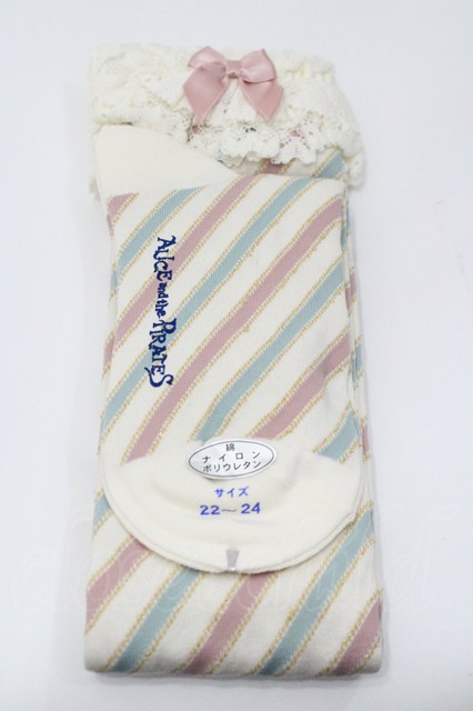ALICE and the PIRATES / ナナメストライプオーバーニー アイボリーXサックスXピンク I-26-01-31-115-PA-ZA-SA-ZI