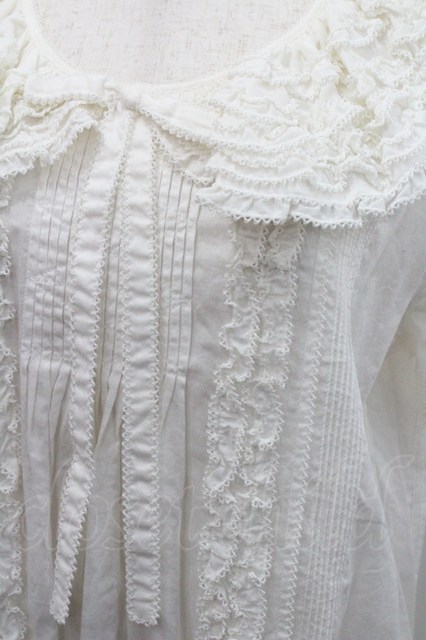 WONDERFUL WORLD / ピコフリル襟半袖ブラウス 生成り I-26-01-31-015-LO-BL-SA-ZI
