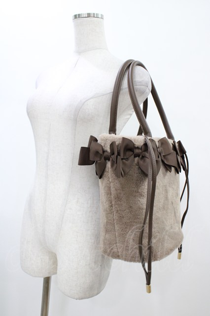 m petit by misako / NINA'Sコラボ リボンファーバッグ ブラウン H-26-02-06-018-LO-BG-NS-ZH [戻る]