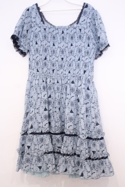 axes femme / シルエット柄ワンピース サックス O-26-01-30-1044-AX-OP-IG-OS