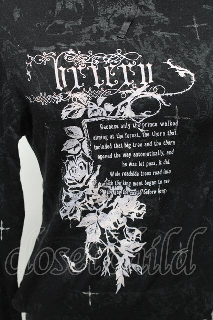 h.naoto Blood / プリント裾レースカットソー 黒 S-26-01-31-1017-HN-TO-HR-ZS