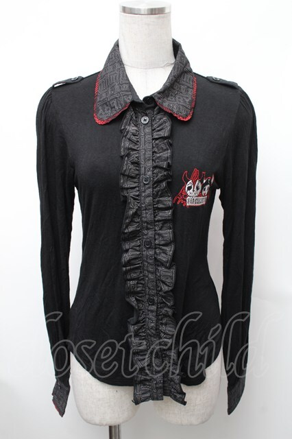 HANGRY&ANGRY / キャラクター刺繍カーディガン 黒x赤 S-26-01-31-1018-HN-TO-HR-ZS