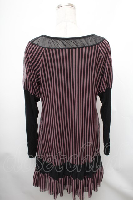 ALGONQUINS / ストライプチュール切替ワンピース 黒xパープル S-26-01-31-1030-AL-OP-HR-ZS