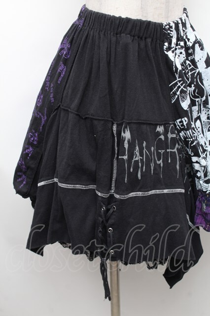 HANGRY&ANGRY / キャラクター切替チェックイレヘムスカート 黒x紫 S-26-01-31-1045-HN-SK-HR-ZS