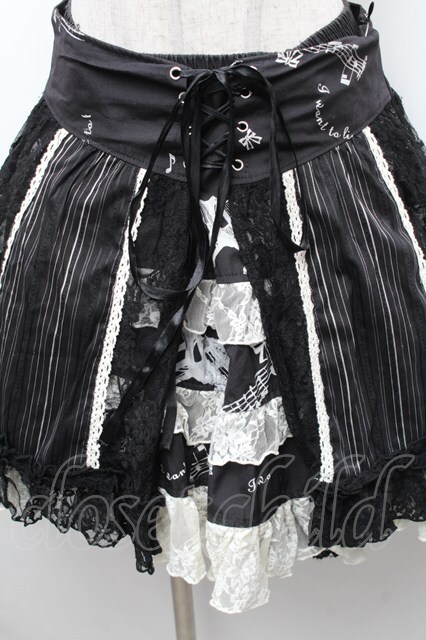 FRILL / レース切替プリントスカート 黒x白 S-26-01-31-1047-HN-SK-HR-ZS