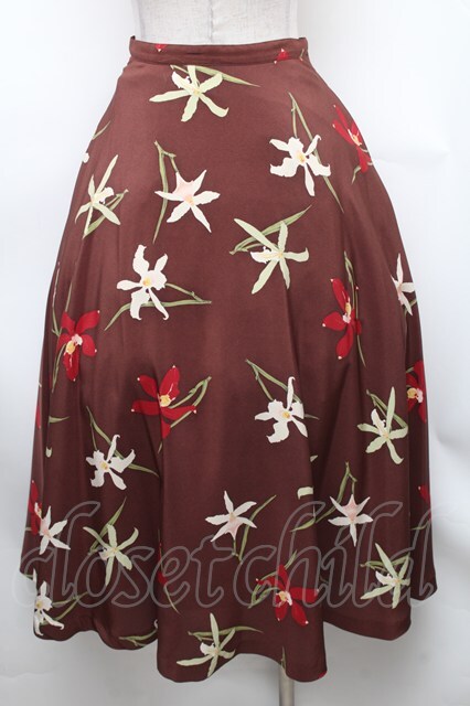 INGEBORG / 百合柄フレアスカート ブラウン S-26-01-31-1049-LO-SK-HR-ZS