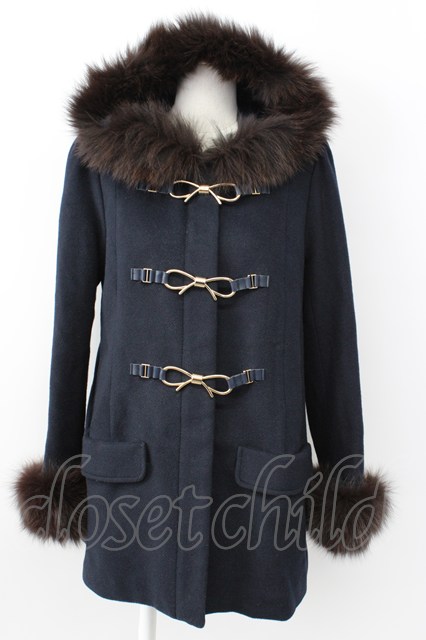 LODISPOTTO / フロント3つリボンファーフードコート 黒Xブラウン T-26-02-05-001-LO-CO-SA-ZT