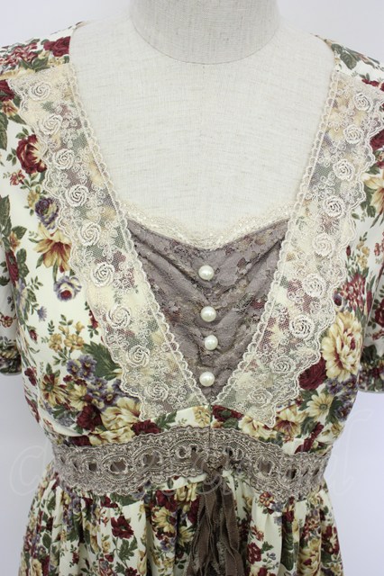 axes femme / 花柄半袖ワンピース M アイボリー T-26-02-05-026-AX-OP-SA-ZT