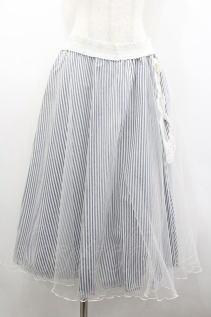 Secret Honey / チュール重ねナナメストライプスカート 白X紺 I-26-02-01-002-CA-SK-SA-ZI