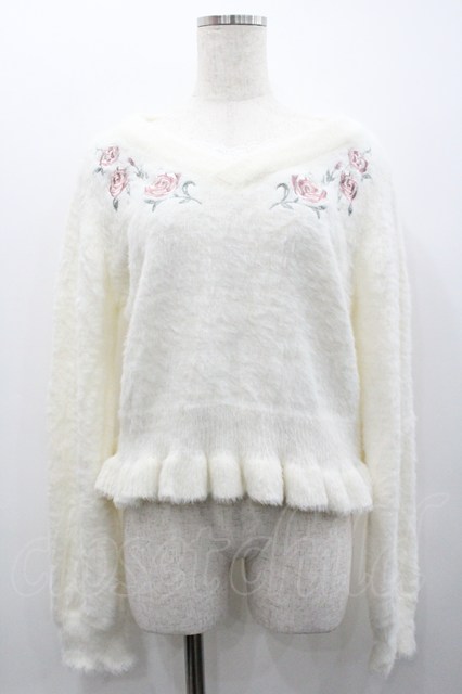 axes femme / ローズ刺繍フェザーニット アイボリー I-26-02-01-083-AX-TO-SA-ZI