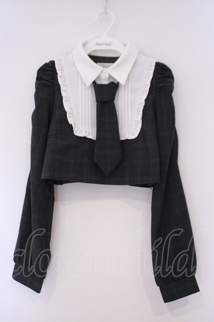 pium / ネクタイ付きスクエアフリル長袖トップス F ブラックチェック O-26-02-03-047-0-TO-OW-OS [戻る]
