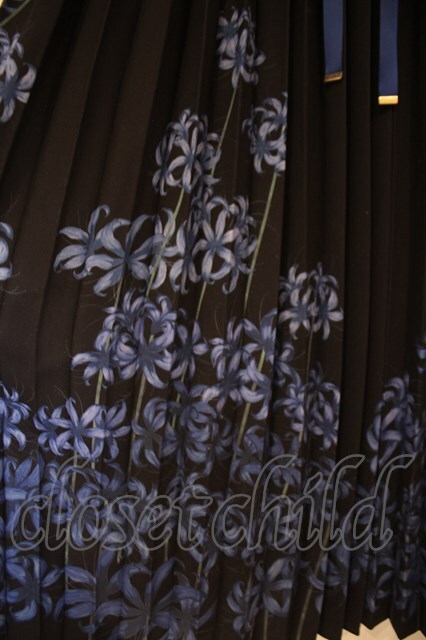 axes femme / 彼岸花柄プリーツジャンスカ F クロ×アオ O-26-02-03-018-AX-OP-OW-OS