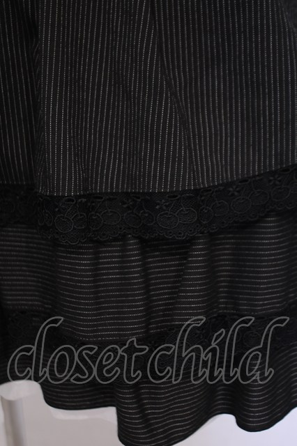 MIHO MATSUDA / チェリーレースピンストライプスカート ブラック O-26-02-03-1056-GO-SK-OW-OS