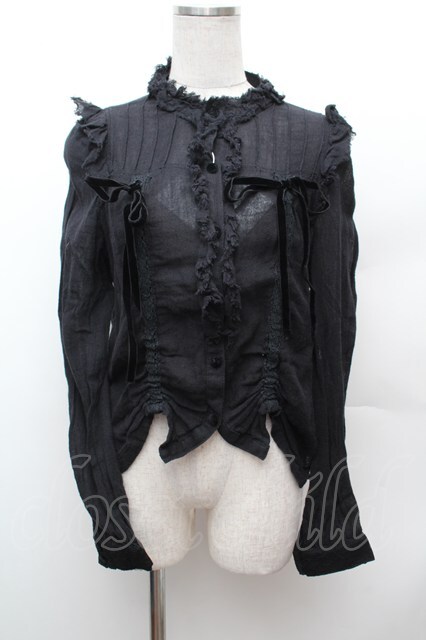 ALGONQUINS / ガーゼフリルブラウス 黒 S-26-02-04-024-AL-BL-HR-ZS
