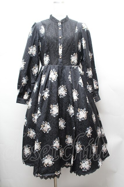 axes femme NOSTALGIE / ブーケ柄ジャガードワンピース 黒 S-26-02-04-033-AX-OP-AS-ZS