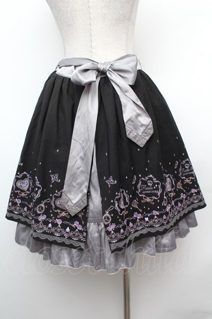 axes femme / メルヘン刺繍スカート 黒xグレー S-26-02-04-046-AX-SK-AS-ZS