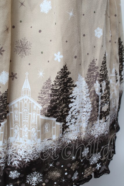 axes femme / 雪降る街柄ミドルスカート ベージュ S-26-02-04-056-AX-SK-HR-ZS