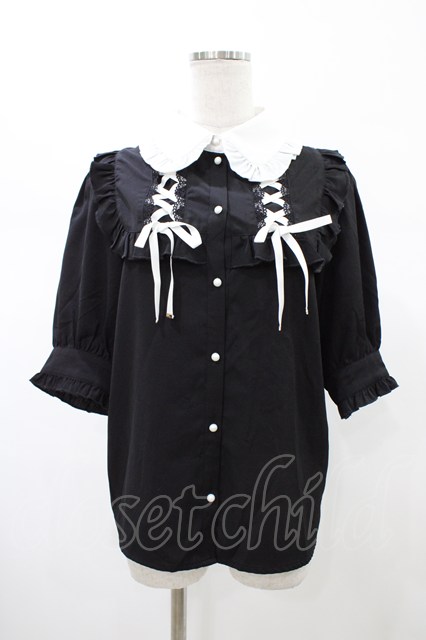 Rojita / 衿フリルダブルレースアップ配色ブラウス Free ブラック H-26-02-09-048-LO-BL-NS-ZH