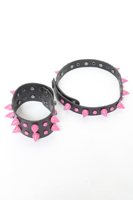 ALGONQUINS / スタッズチョーカー&ブレスレット 黒×ピンク Y-26-02-04-015-AL-AC-SZ-ZY [戻る]