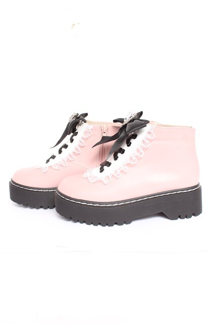 DearMyLove / ローヒールハートビジューレースアップシューズ 22.5cm ピンク Y-26-02-04-064-EL-SH-SZ-ZY