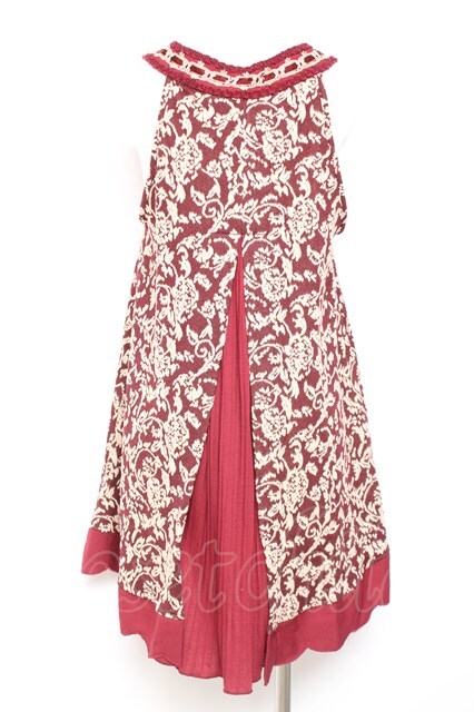 axes femme / サイドリボンデザイン総柄ジャンパースカート M ワイン Y-26-02-04-097-AX-OP-SZ-ZY [戻る]