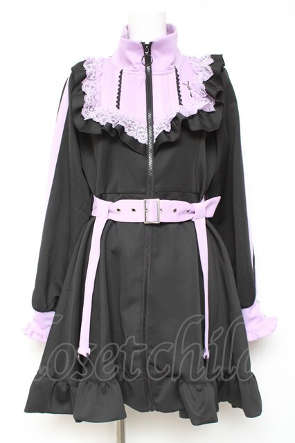 DearMyLove / 十字架刺繍フリルシスタージャージワンピース L パープル×ブラック Y-26-02-04-102-EL-OP-SZ-ZY