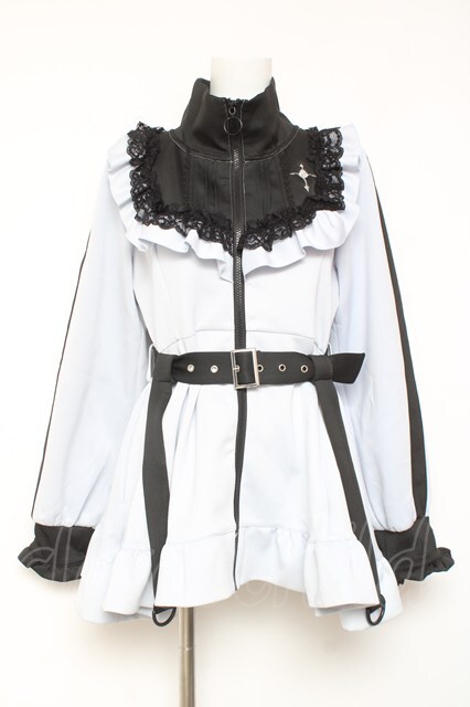 DearMyLove / 十字架刺繍フリルシスタージャージワンピース M サックス×ブラック Y-26-02-04-103-EL-OP-SZ-ZY [戻る]