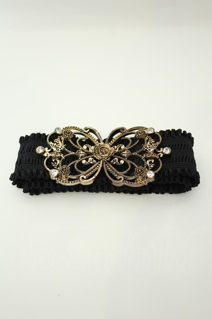 axes femme / 立体バラ×蝶ゴムベルト ゴールド×クロ O-26-02-05-036-AX-ZA-IG-OS [戻る]