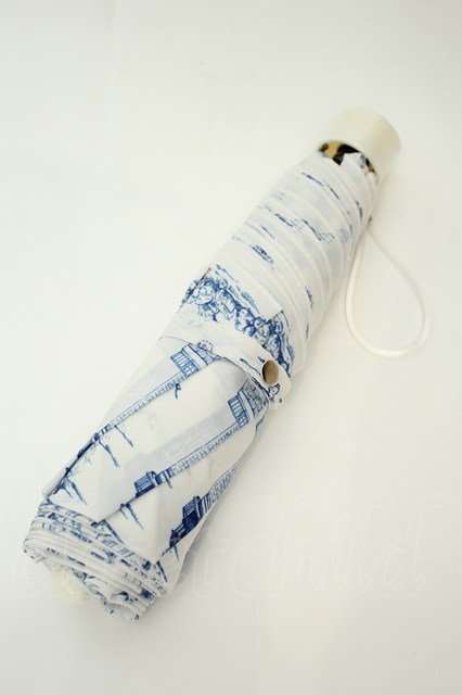 an another angelus / トワル風マリン柄折りたたみ傘 オフシロ×ブルー O-26-02-05-045-CA-ZA-IG-OS