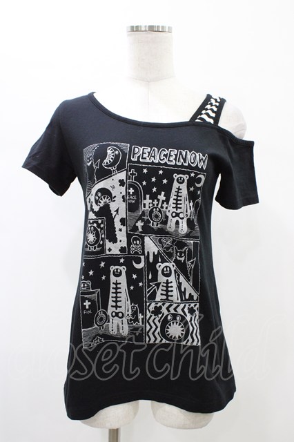 PEACE NOW / アシメショルダーカットソー ブラック H-26-02-07-1054-PU-TO-KB-ZH [戻る]