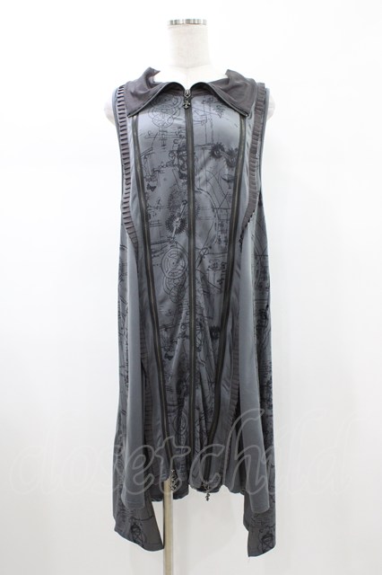 Ozz conte / プリント切替ZIPロングジレ グレー H-26-02-07-1031-OO-TO-KB-ZH