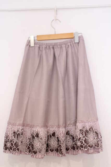 axes femme / 裾フラワーレースミディスカート ピンク O-26-02-04-1031-AX-SK-IG-OS