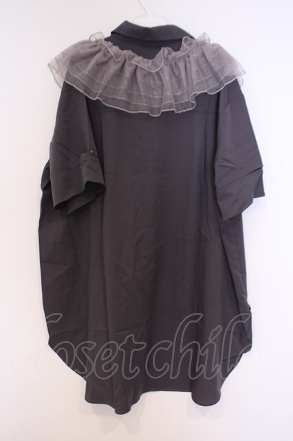 axes femme / チュールフリルカラー付シャツ チャコール O-26-02-04-1065-AX-BL-IG-OS
