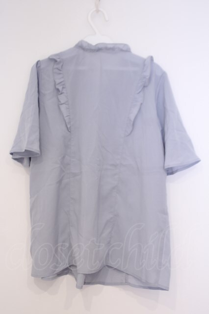 axes femme / ギャザーデザインフレア袖ブラウス L サックス O-26-02-04-1110-AX-BL-IG-OS