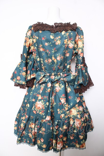 axes femme kawaii / アンティークローズ柄ワンピース M グリーン Y-26-02-05-091-AX-OP-SZ-ZY