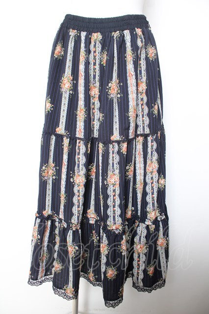 axes femme / ストライプ花柄ロングスカート M 紺 Y-26-02-05-098-AX-SK-SZ-ZY [戻る]