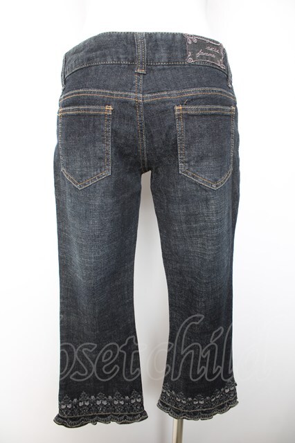 axes femme / 刺繍入りクロップドデニムパンツ L 黒 Y-26-02-05-099-AX-PA-SZ-ZY