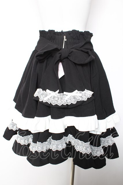DearMyLoveEmily / フリルたっぷりリボンスカート L ブラック×ホワイト Y-26-02-05-102-LO-SK-SZ-ZY