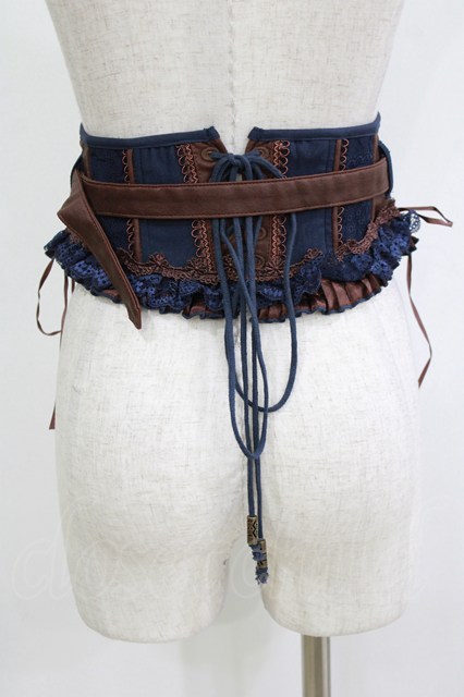 OZZ ANGELO / ベルト付ショートコルセット ネイビー×ブラウン H-26-02-10-048-OO-ZA-KB-ZH [戻る]