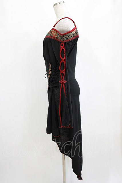 Ozz oneste / 和チャイナオフショルチュニックカーデ 黒×赤 H-26-02-10-032-OO-TO-KB-ZH [戻る]