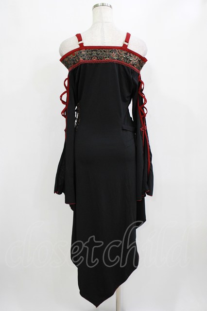 Ozz oneste / 和チャイナオフショルチュニックカーデ 黒×赤 H-26-02-10-032-OO-TO-KB-ZH
