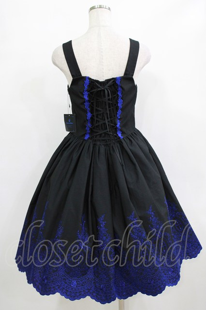 Moi-meme-Moitie / Rose Garden刺繍ジャンパースカート 9号 黒×青 H-26-02-10-001-MO-OP-KB-ZH [戻る]